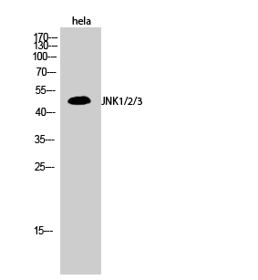 JNK1/2/3 Polyclonal Antibody detects endogenous levels of JNK1/2/3 protein.