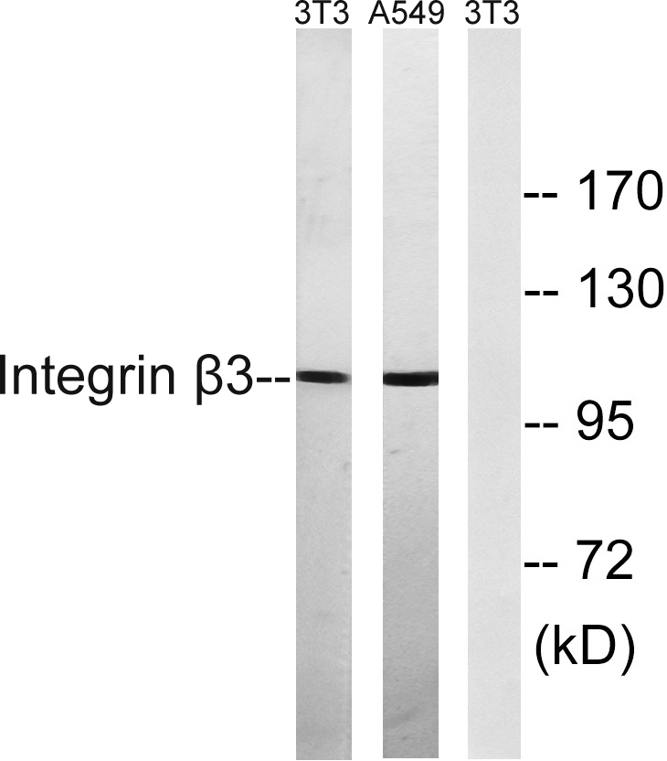 Integrin β3 Polyclonal Antibody detects endogenous levels of Integrin β3 protein.