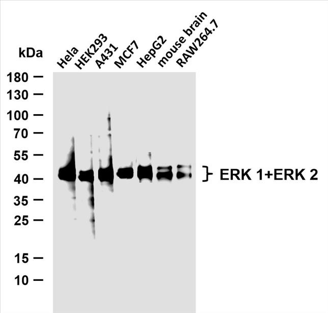 The p44/42 MAP Kinase Colorimetric Cell-Based ELISA Kit is a convenient, lysate-free, high throughput and sensitive assay kit that can detect p44/42MAPKinase protein expression profile in cells. The kit can be used for measuring the relative amounts of p44/42MAPKinase in cultured cells as well as screening for the effects that variuos treatments, inhibitors (ie siRNA or chemicals), or activators have on p44/42MAPKinase.