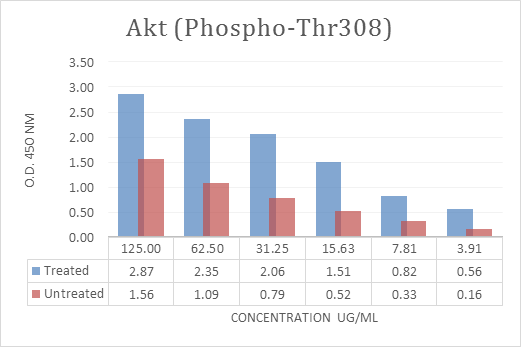 The Phospho-Akt (Thr308) Fluorometric Cell-Based ELISA Kit is a convenient, lysate-free, high throughput and sensitive assay kit that can monitor Phospho-AKT2 (Thr308) protein phosphorylation and expression profile in cells. The kit can be used for measuring the relative amounts of phosphorylated Phospho-AKT2 (Thr308) in cultured cells as well as screening for the effects that various treatments, inhibitors (ie. siRNA or chemicals, or activators have on CAV1 phosphorylation.