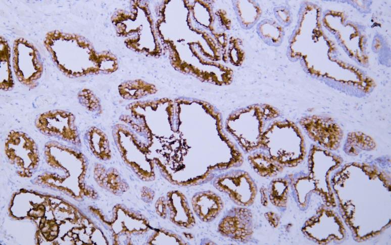 PSA is a glycoprotein synthesized by prostate epithelial cells. It is expressed in normal prostate acinar cells, ductal epithelial cells and intraluminal secretions. It is one of the specific prostate markers. It is mainly used for the diagnosis of prostate cancer and metastatic prostate cancer.